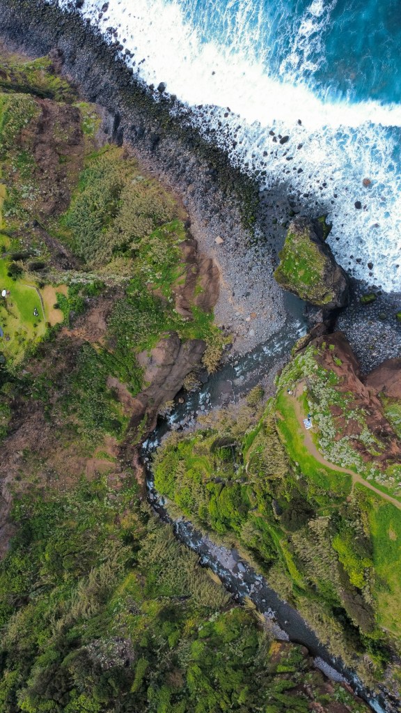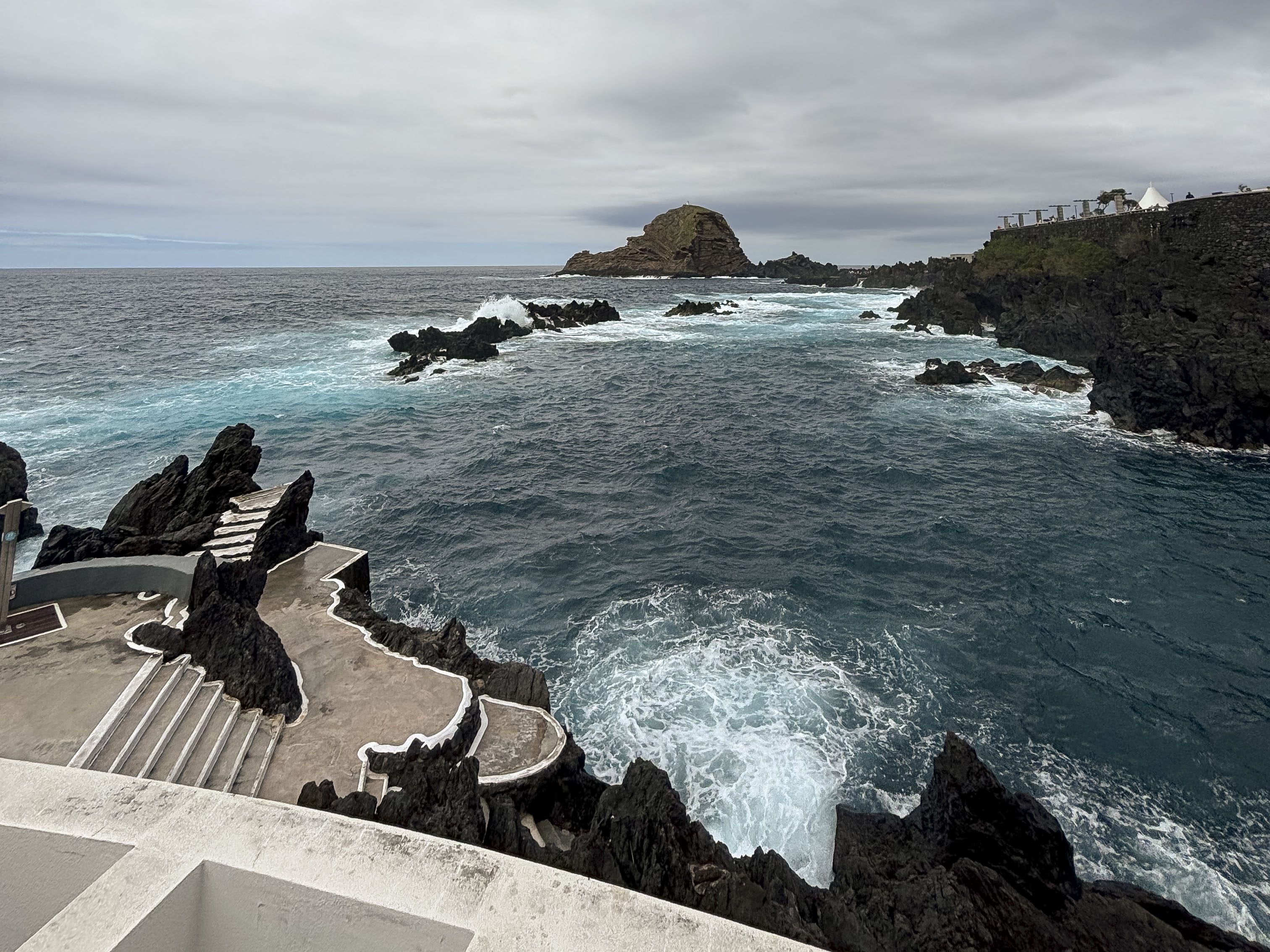 Další zastávkou bylo Porto Moniz, kde se nachází známé přírodní bazénky Porto Moniz Volcanic Natural Pools. Na Madeiře jich najdete víc a většina je placená (cca 3 €). Tyhle jsou přímo ve městě a parkování je bez problémů. My jsme bohužel chytly chladnější počasí, takže jen rychlá zastávka.