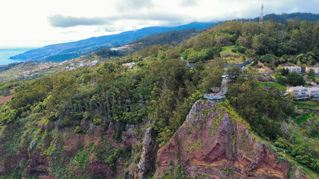 Další raketová vyhlídka? Nejlepší start dne! Konkrétně tedy Sao Vicente. Tohle je přesně ta ikonická vyhlídka z TikToku. My dorazily ještě před otevřením kavárny, takže žádní lidé, jen ticho, výhled a dron.