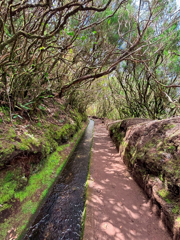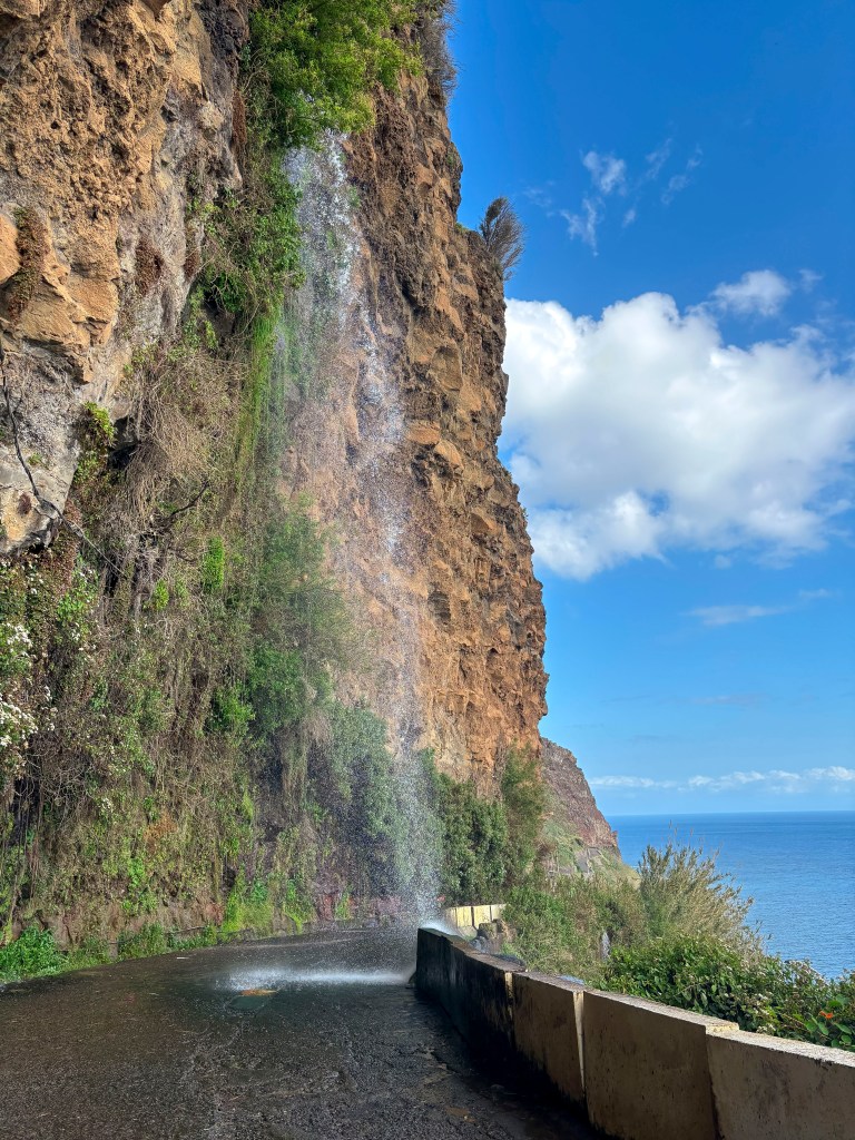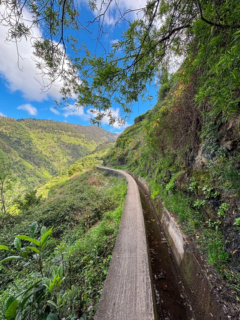 Auto jsme nechaly v okolí kostelíka ve vesnici Ponta do Sol. Na vesnici se orientujete pomocí ukazatelů. Jelikož je trasa okružní, je jedno, na které straně začnete. U popisu téhle trasy jsme se dočetly, že vám může způsobovat mírné závratě. No… přišly jsme dost rychle na to, jak to mysleli. V některých úsecích jdete doslova po okraji kanálu a z druhé strany je sráz – i já, co se bojím výšek, jsem to ale zvládla. Trasu půlí dlouhý tunel a na jeho konci 2 vodopády, které tečou přímo nad vámi.