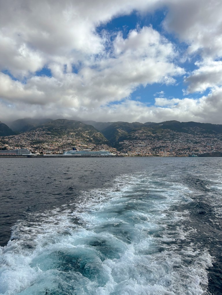Den jsme začaly plavbou lodí za delfíny podél pobřeží Funchalu. Lístky jsme kupovaly předem přes GetYourGuide. Plavba byla fajn a delfíny jsme opravdu viděly – bohužel spíš z dálky. U těchto výletů ale hodně záleží na štěstí a na tom, kde se zrovna zvířata pohybují.