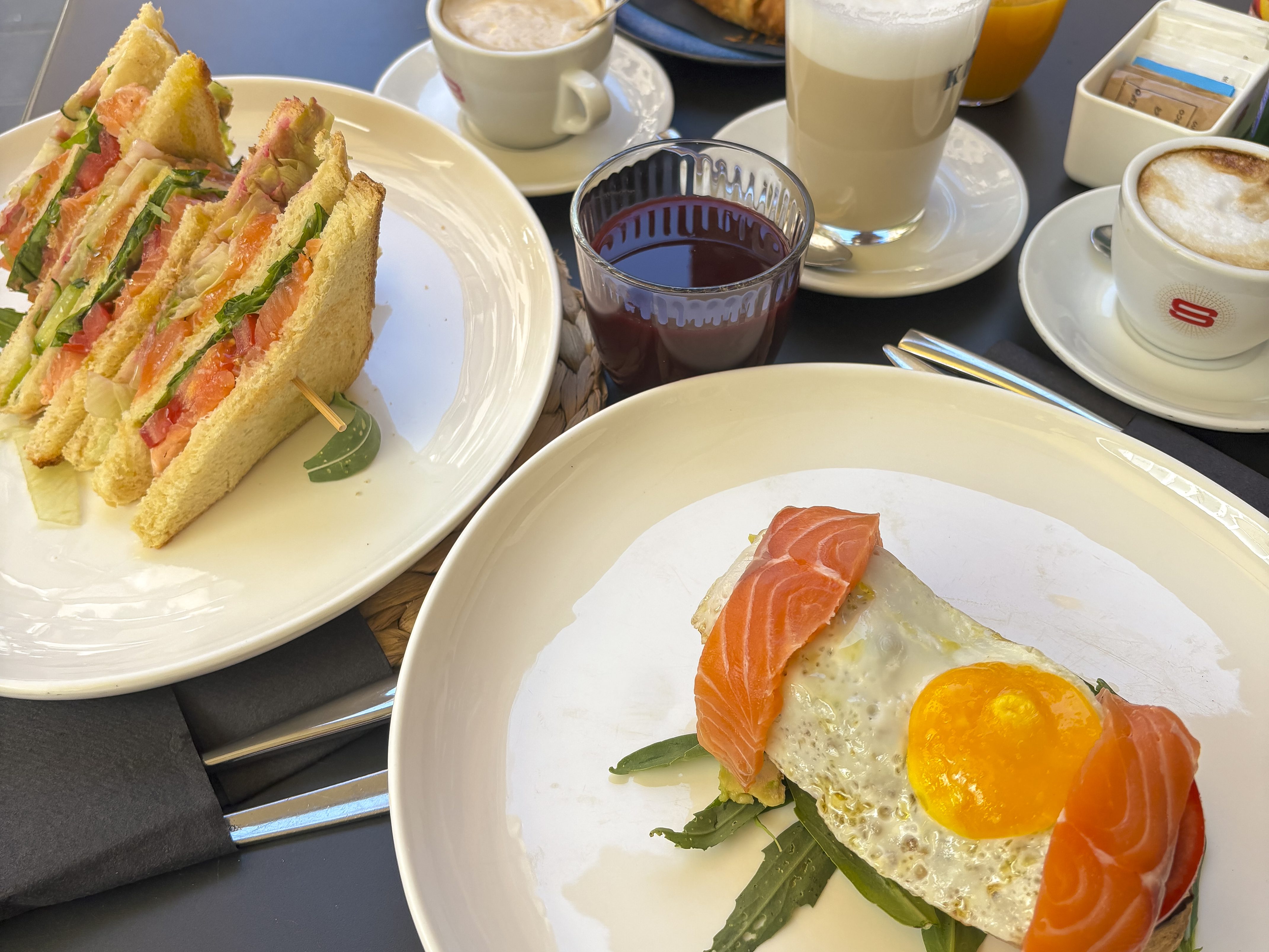 Jak jsme večer končily, tak jsme i začínaly – rovnou brunchem v Muto – Cafè Bistrot. Káva i mimosa byly nutností.