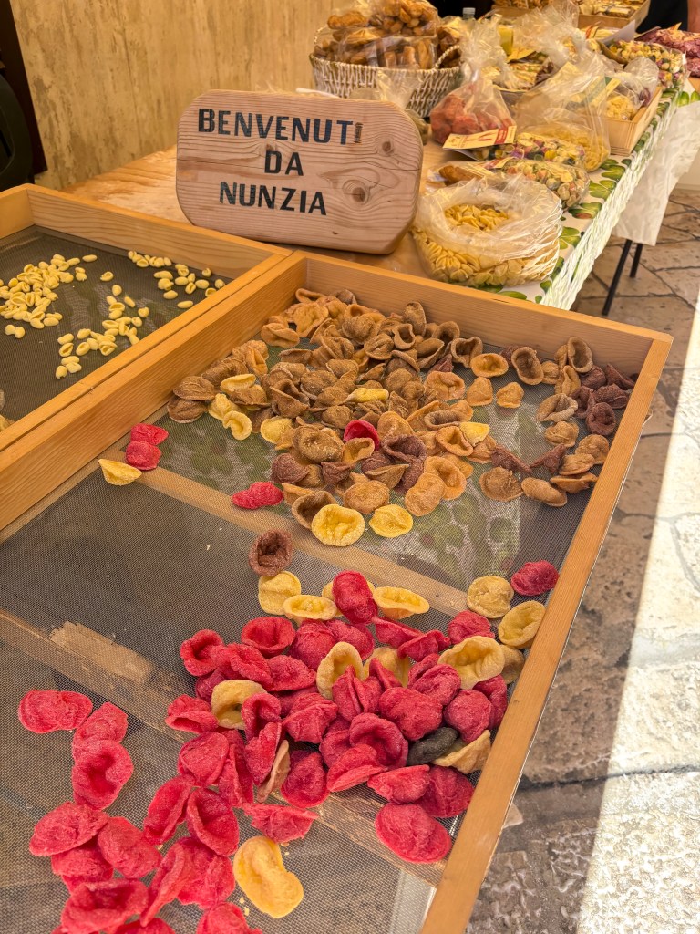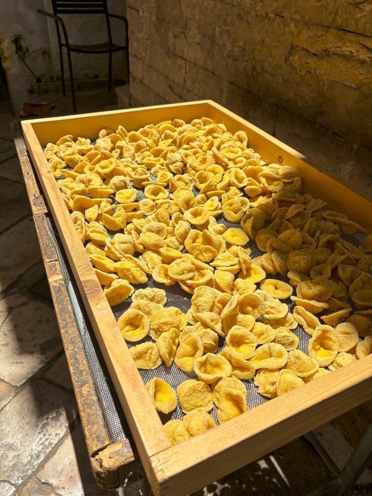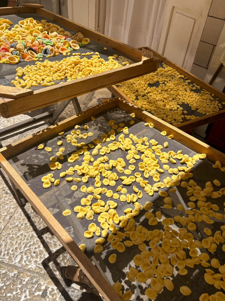 Následně jsme vyrazily do uličky Via dell‘Arco Basso. Tahle ulička v Bari je známá tím, že tam lokální tetiny přímo před vámi vyrábějí domácí těstoviny. A klidně si je můžete rovnou koupit.