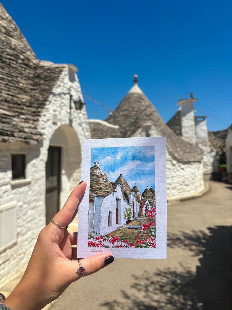 No ale proč jsme na tohle místo tak moc chtěly? Alberobello je město v italské Apulii, proslulé svými unikátními bílými domky s kuželovitými střechami zvanými trulli, které jsou zapsány na seznamu světového dědictví UNESCO. Je tu spousta suvenýrů, kaváren a zmrzlináren a jsou to prostě malé bílé roztomilé domečky. Celé město se dá projít zhruba za hodinku a půl.