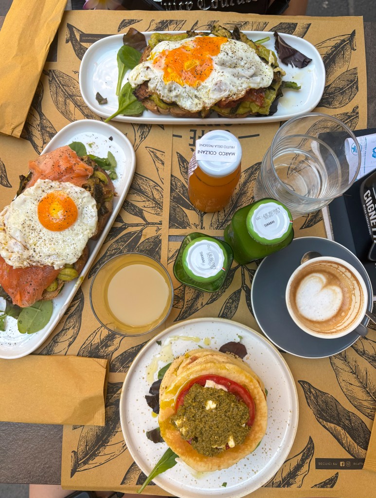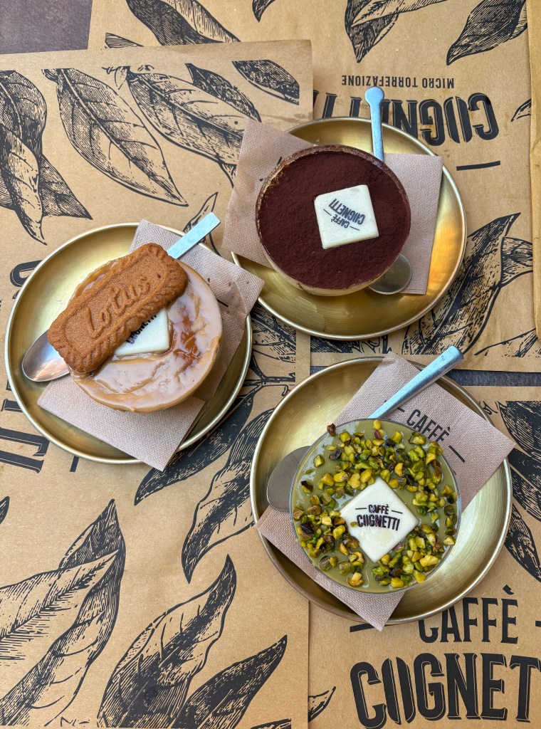 Poslední den začal check-outem a uložením batohů do úschovny na vlakovém nádraží. Následovala samozřejmě snídaně s mimosou. Zvolily jsme stejnou lokaci jako včera – Caffè Cognetti – Specialty Coffee & Bakery, protože jídlo tam bylo skvělé. Ale vzhledem k tomu, že jsem v Itálii nemohly jsme si odpustit taste test tiramisu. Obyčejného, lotus a pistáciového. Dokonalé byly všechny.