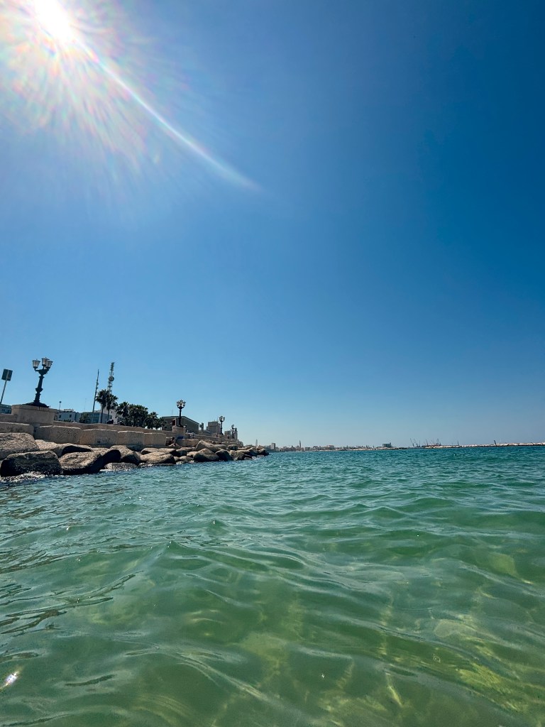 Letadlo nám letělo až večer, takže jsme den strávily na pláži v Bari – Pane e Pomodoro, kam jsme se už den předtím šly podívat.