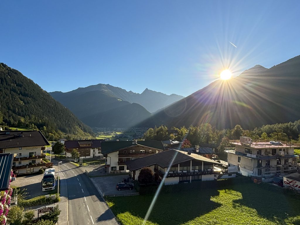 Ráno začalo snídaní s naprosto brutálním výhledem na hory a údolí z našeho ubytování ve Finkenbergu. Hned na to jsme vyrazily na naši první zastávku.