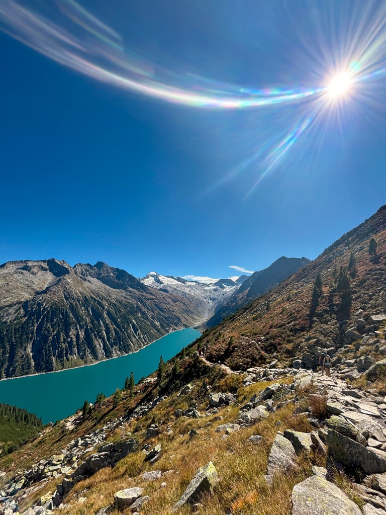 Tou byl hike na horskou chatu Olpererhütte (2 389m.n.m.) v rakouském Tyrolsku. Cesta vede autem skrz jednosměrný tunel, kde se platí 18 € za auto a pokud nevyjede včas, před tunelem budete dlouho čekat.